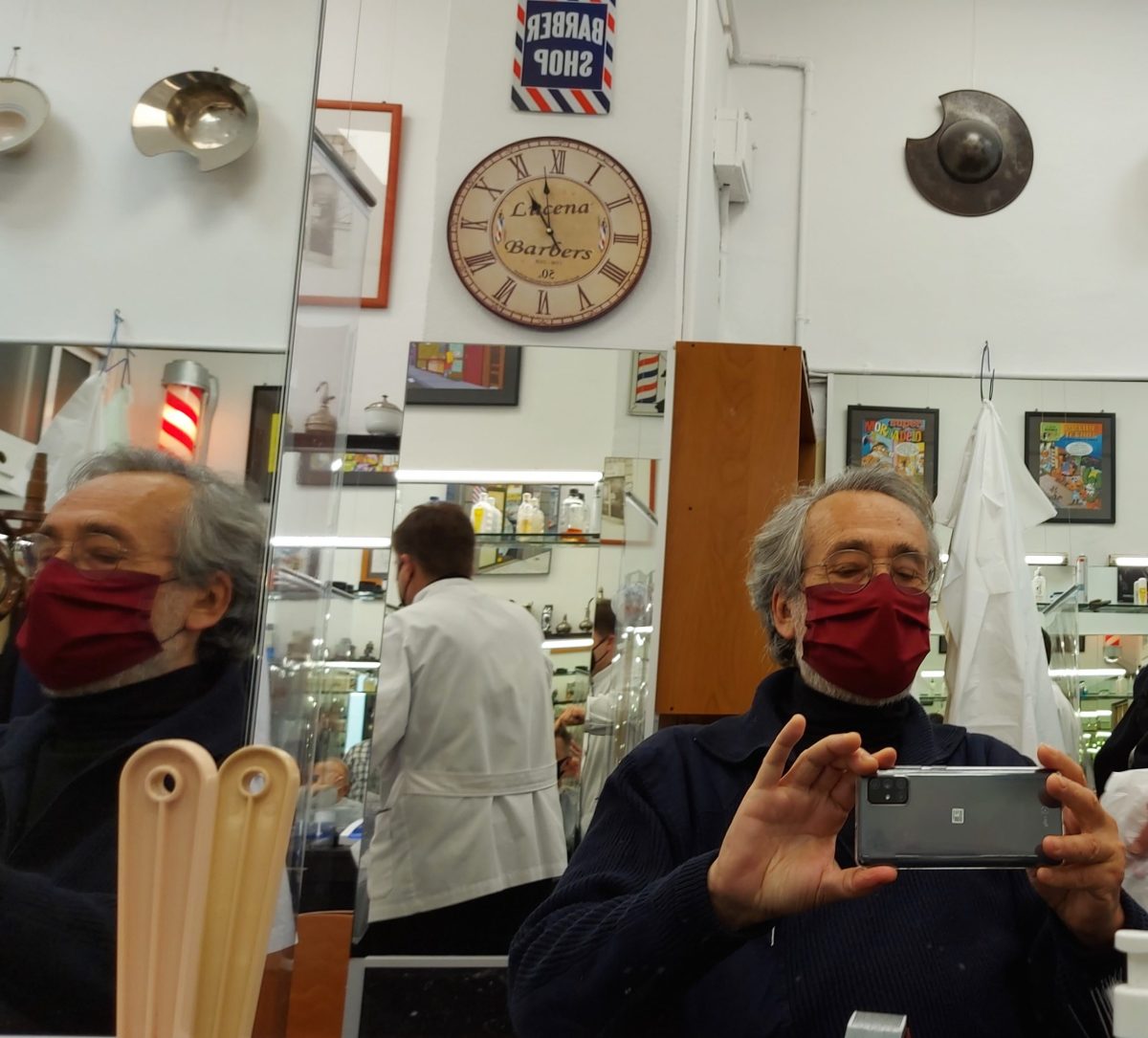 Volvió a pasar el tiempo. Y un día, buceando por internet, busqué por curiosidad si la barbería seguía existiendo. Me sorprendió comprobar que estaba ahora en la cuarta generación, con el hijo y el nieto del señor Lucena al frente. Aquello destapó el frasco de los recuerdos profundos. Y a la primera ocasión que pude, volví a la calle Casanova, a sentarme frente a la misma galería de espejos. Incluso Álvaro, el hijo del señor Lucena, se ponía las gafas inclinadas hacia adelante. Como si fuera su padre.